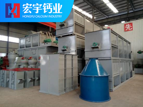 搅拌槽式石灰消化机(化灰机)主要是将生石灰消化成消石灰粉的设备,也可以将生石灰消化成石灰乳,它分单轴搅拌和双轴搅拌两类,每类又分串联式和组合式两种形式。每种都是由动力装置、搅拌槽体、搅拌轴、耐磨搅拌叶片、喷淋装置、除尘装置等组成。